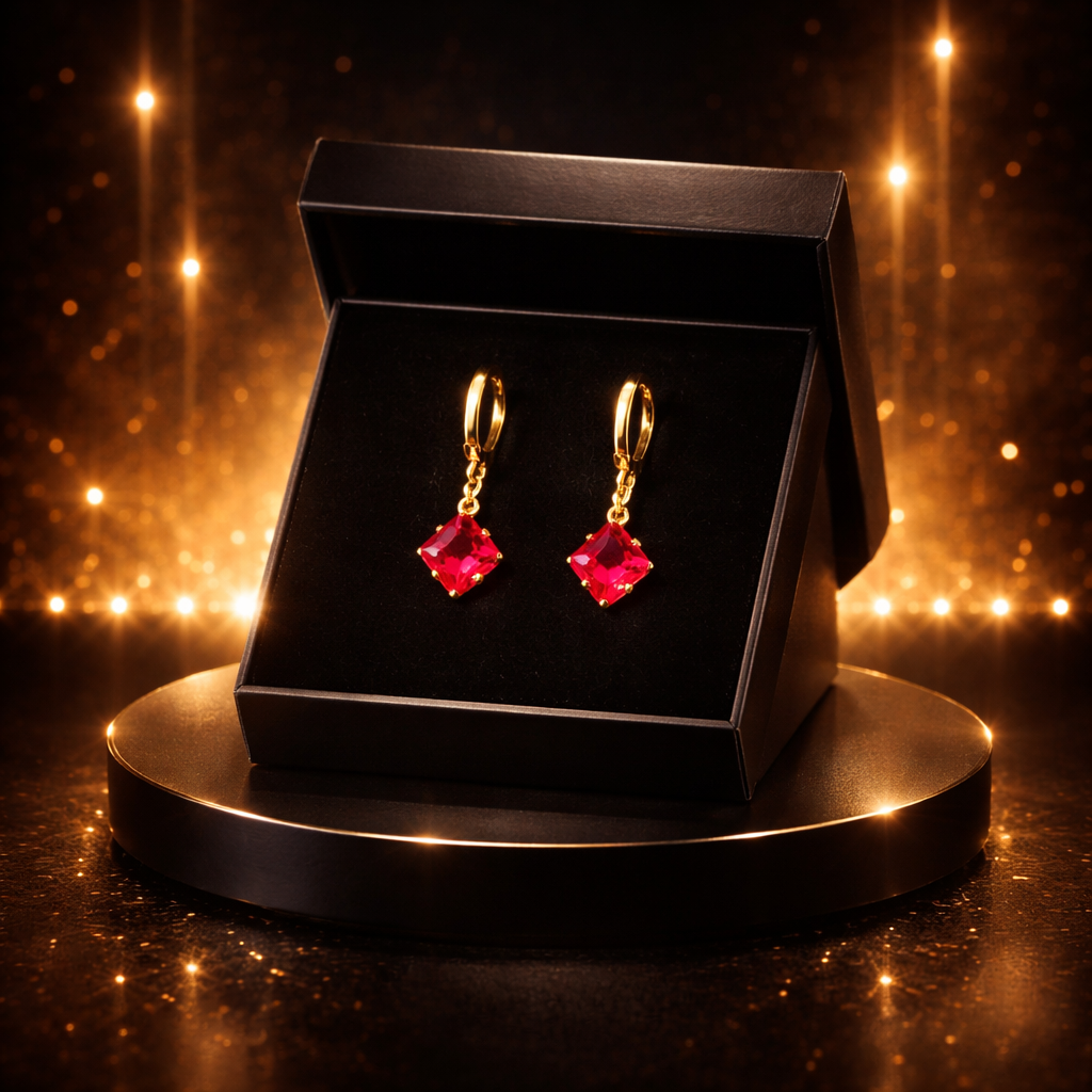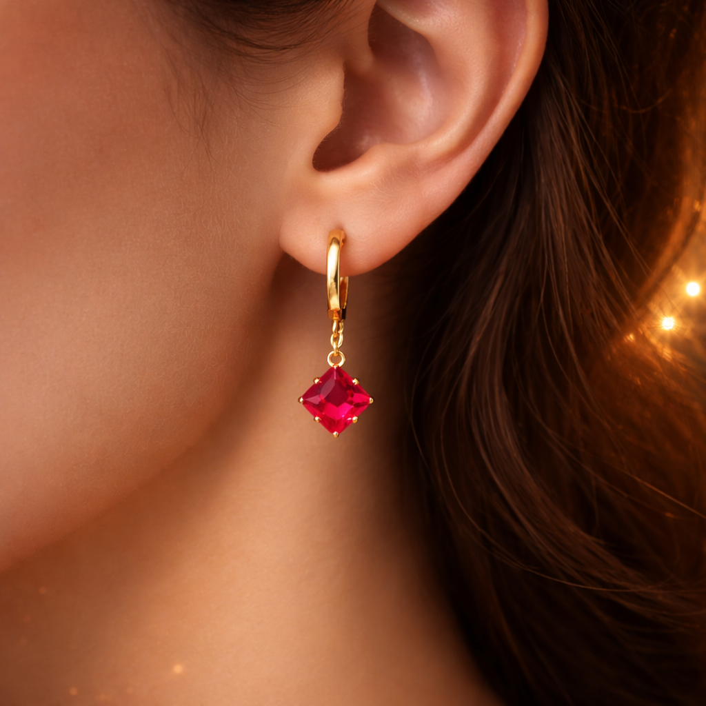 The Crimson Radiance Earrings feature vibrant red stones that bring bold elegance and glamour to your jewellery collection. Designed to make every outfit stand out.